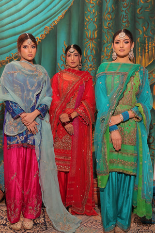 Green Blue Ombre Embroidered Shirt with JM Salwar Set
