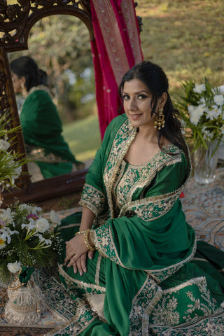 Mint Green Embroidered Suit With Three-Kali Shararra