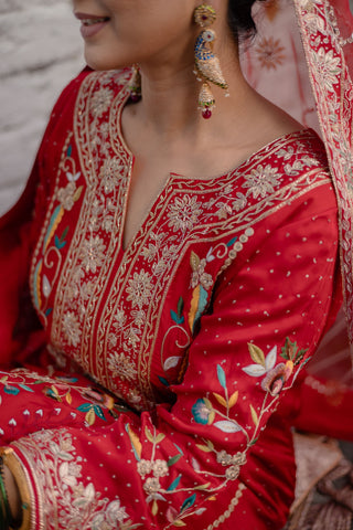 Raspberry Radiance Embroidered Shirt With Ghagra Set